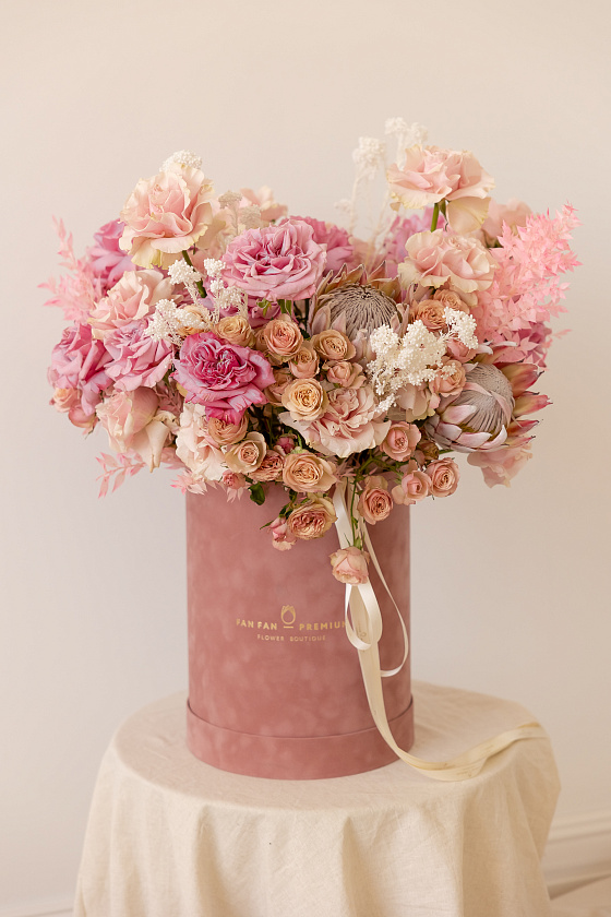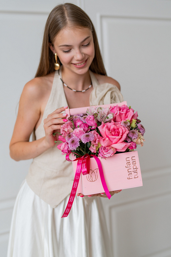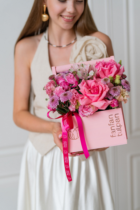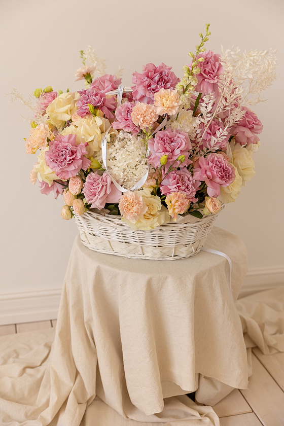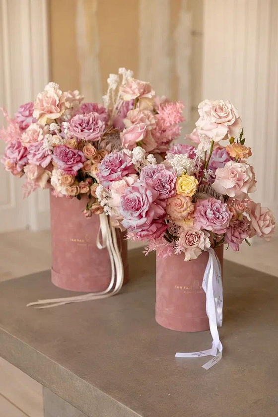 Собираем изысканные моно- и микс-композиции в корзинах, крафте, ящиках и шляпных коробках.