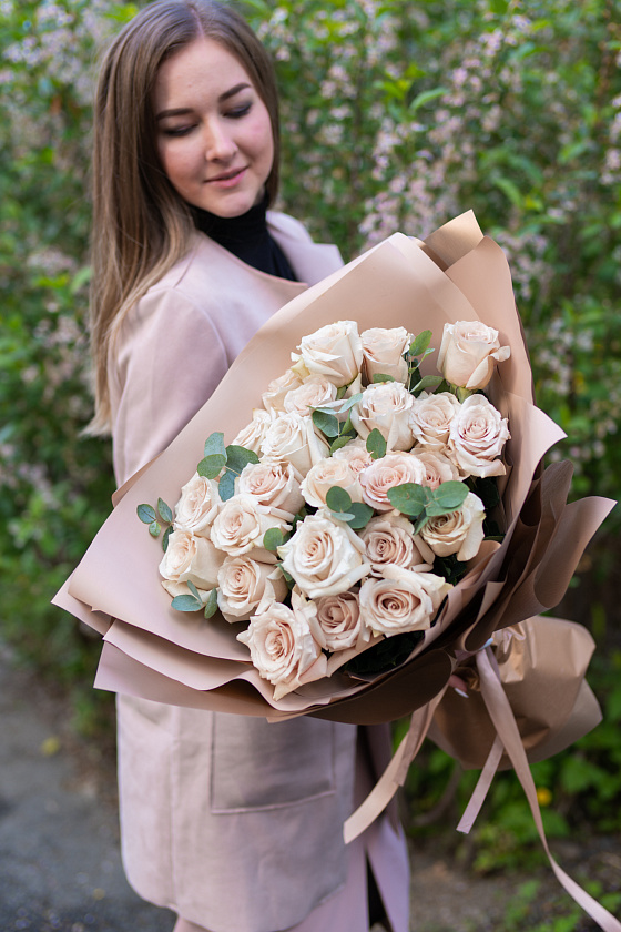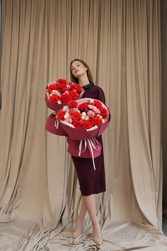 На стоимость композиции влияет упаковка, сорта, количество цветов, присутствие зелени или декоративных элементов. Цены располагаются под каждым товаром на сайте.
