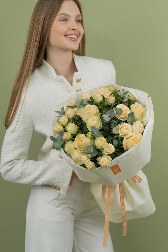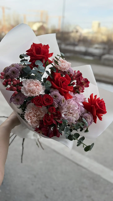 На стоимость композиции влияет упаковка, сорта, количество цветов, присутствие зелени или декоративных элементов. Цены располагаются под каждым товаром на сайте.