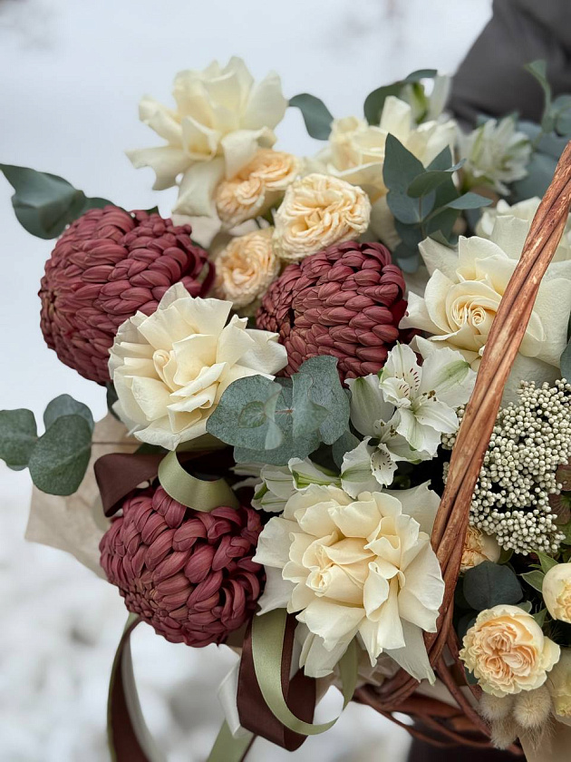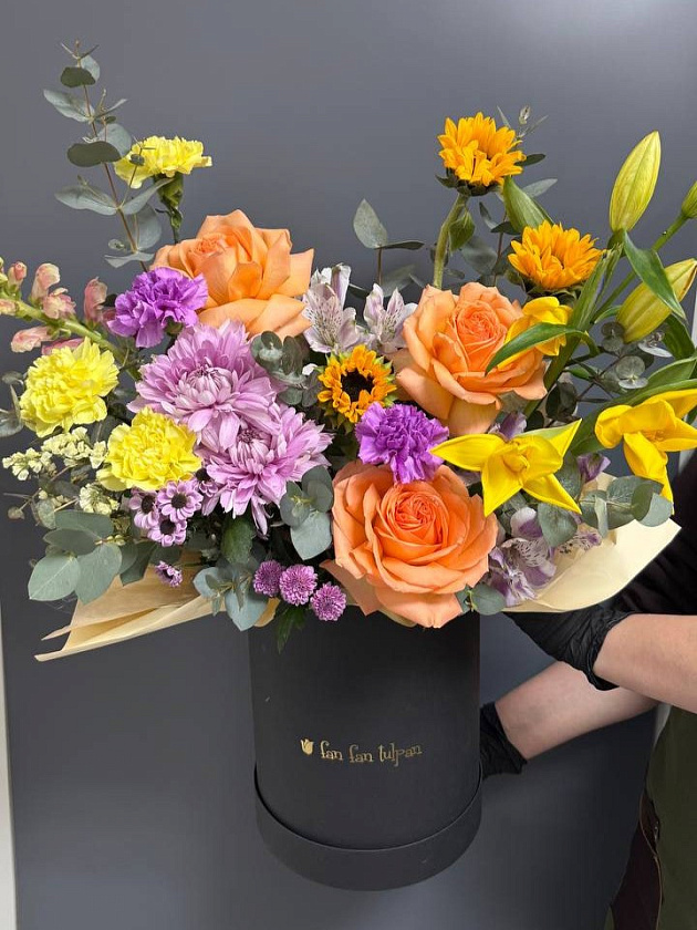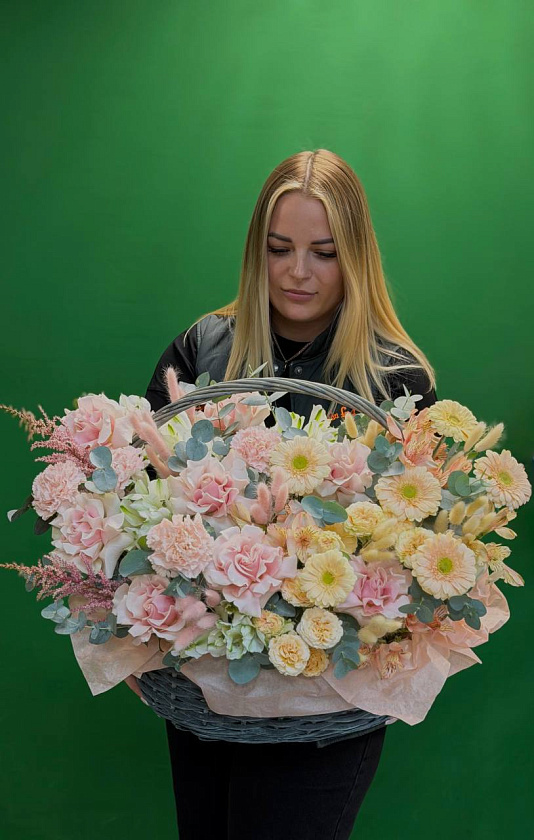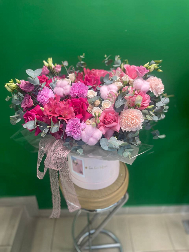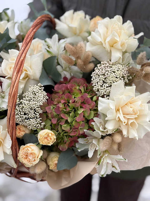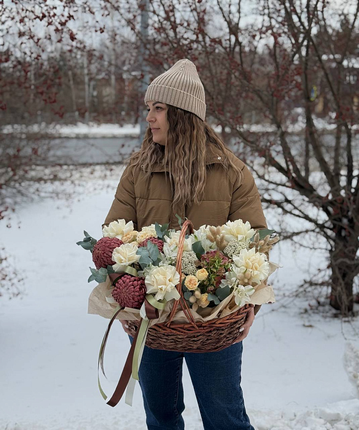 Собираем изысканные моно- и микс-композиции в корзинах, крафте, ящиках и шляпных коробках.