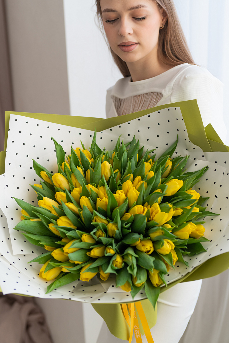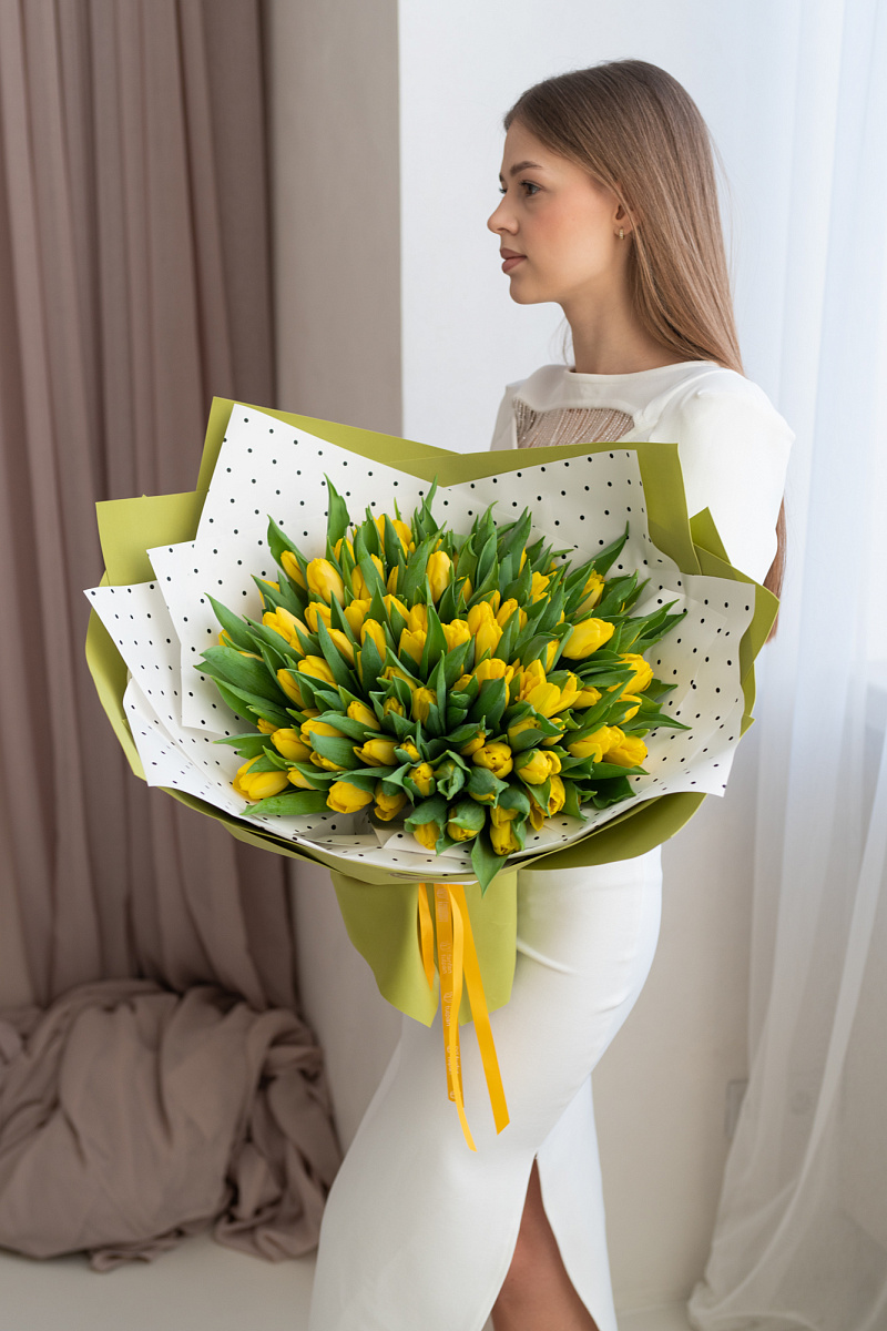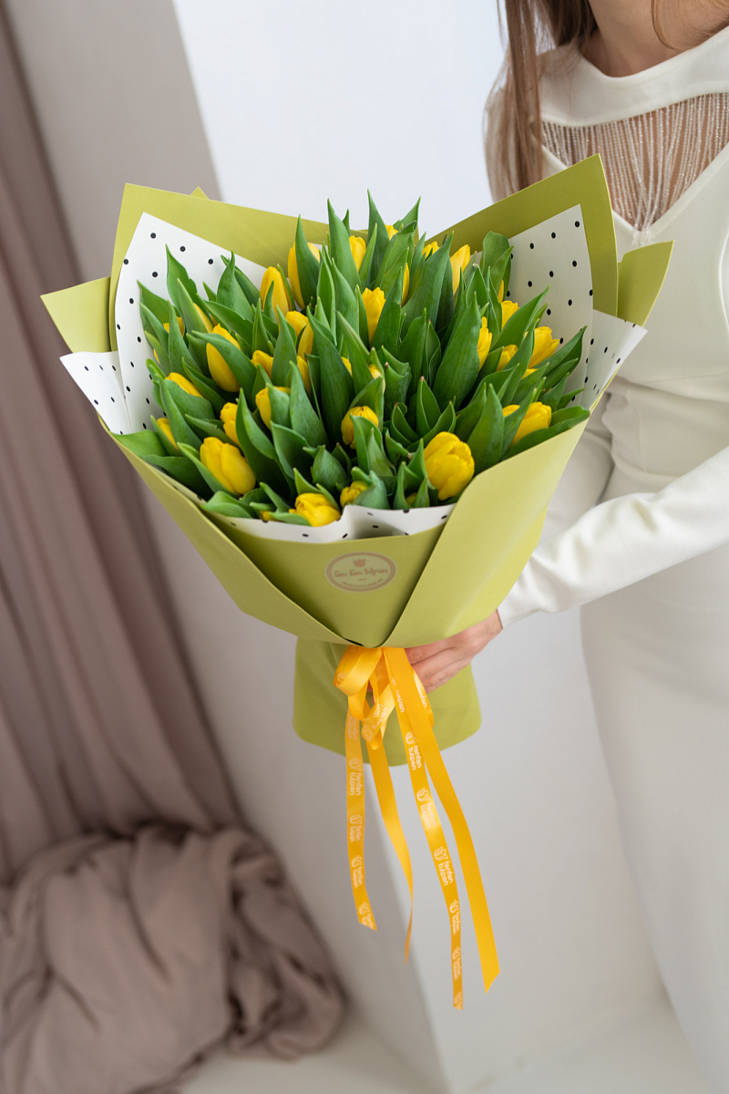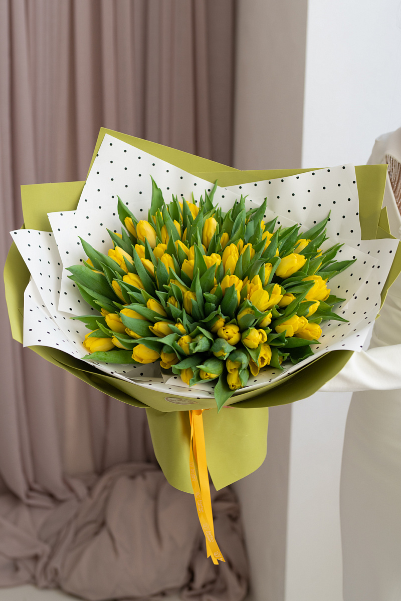 Тюльпаны — это и символ весны, и проявление бесконечной красоты природы. Их нежные лепестки, испускающие легкий аромат, завораживают своей простотой и изысканностью одновременно. И вот, когда ты видишь целый букет из тюльпанов перед собой, то понимаешь, что это произведение искусства, созданное руками талантливых флористов.