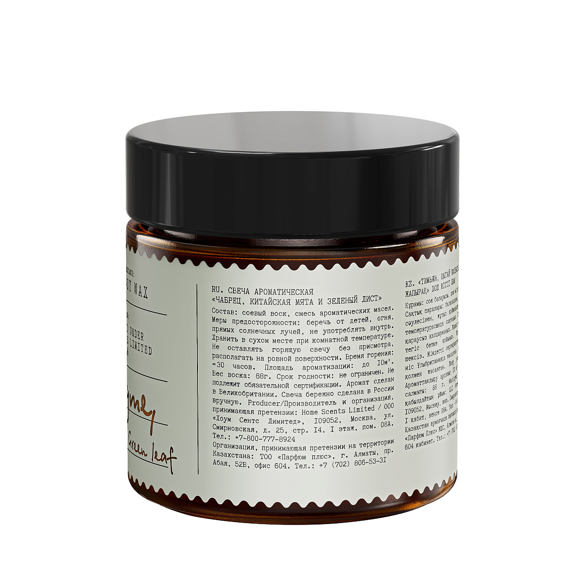 Чабрец и китайская мята создают освежающий и живительный букет, который наполняет дом звенящей легкостью и чистотой. Современное звучание ароматных трав и зеленого листа добавляет естественную свежесть и способствует концентрации внимания.