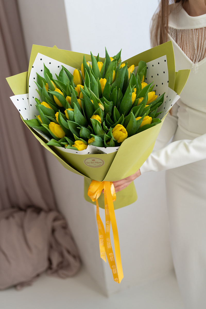 Тюльпаны — это и символ весны, и проявление бесконечной красоты природы. Их нежные лепестки, испускающие легкий аромат, завораживают своей простотой и изысканностью одновременно. И вот, когда ты видишь целый букет из тюльпанов перед собой, то понимаешь, что это произведение искусства, созданное руками талантливых флористов.