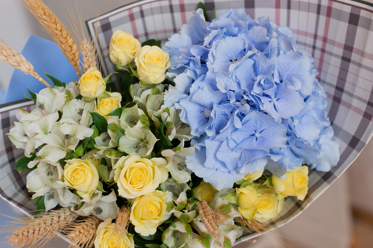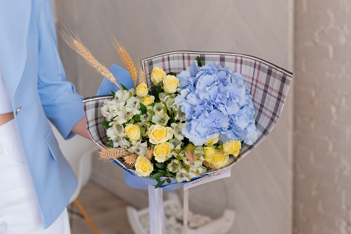 Роза кустовая ,Альстромерия ,Гортензия ,Пистация ,Пшеница