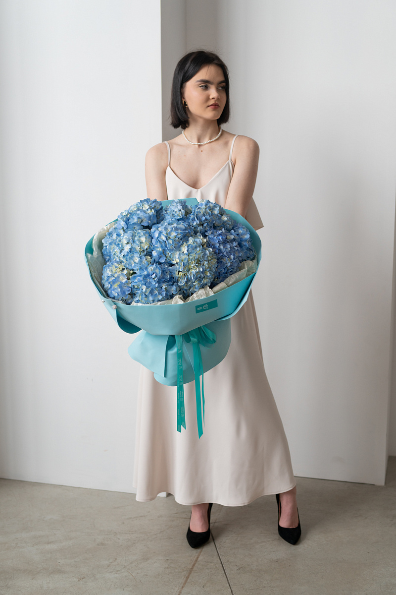 Такой букет из гортензий – это идеальное решение для особенных случаев и праздников, так как эти цветы способны подарить вам ощущение роскоши. Букет из гортензий также является символом эмоций, страсти и гармонии.