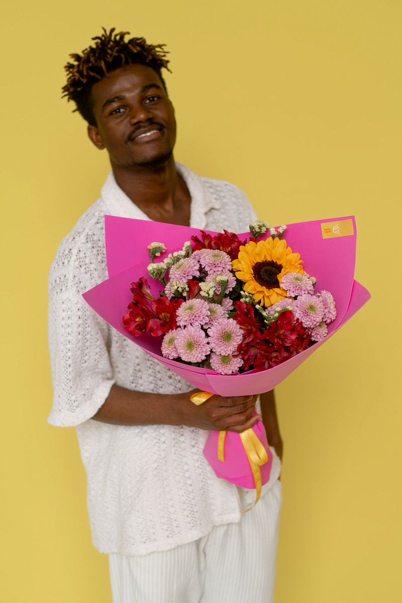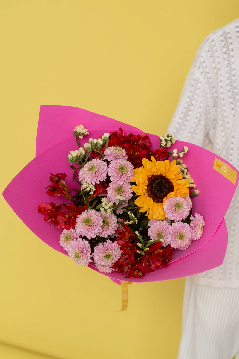 Хризантема кустовая ,Альстромерия ,Подсолнух ,Статица