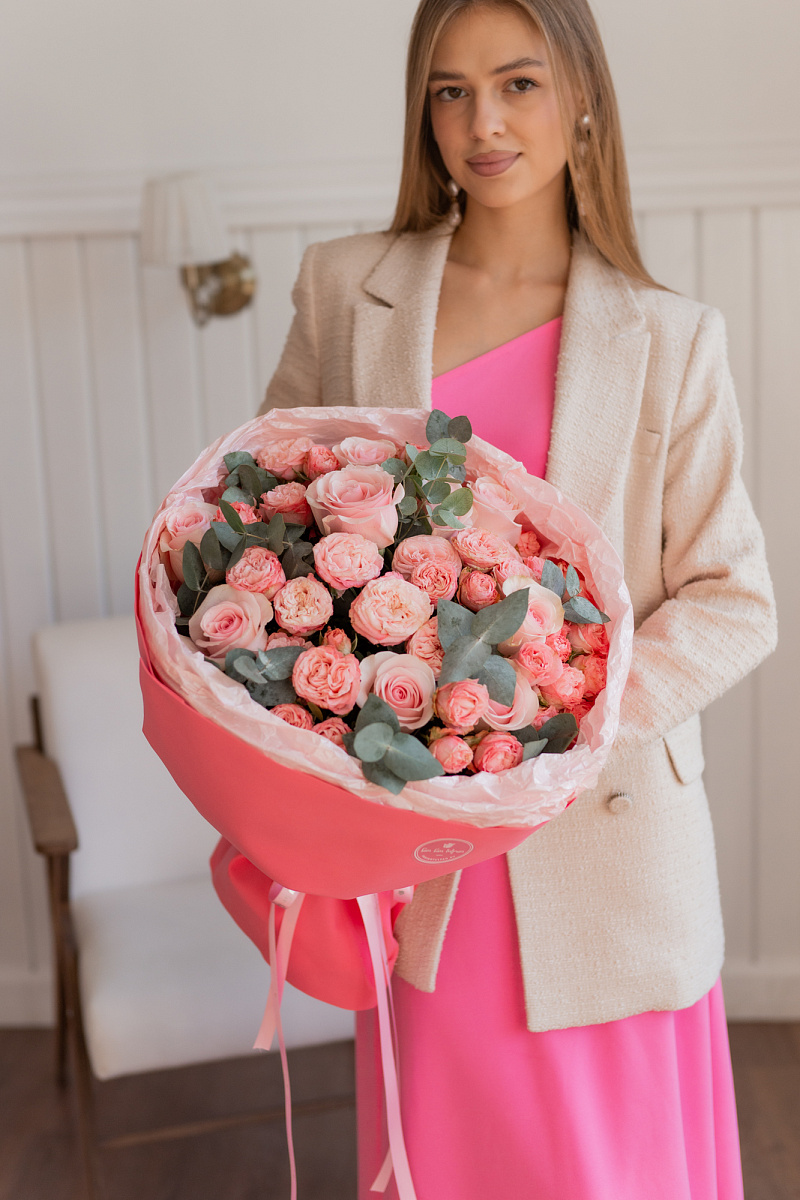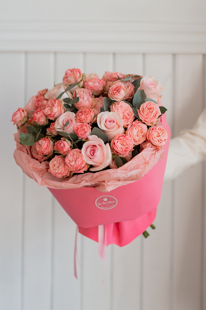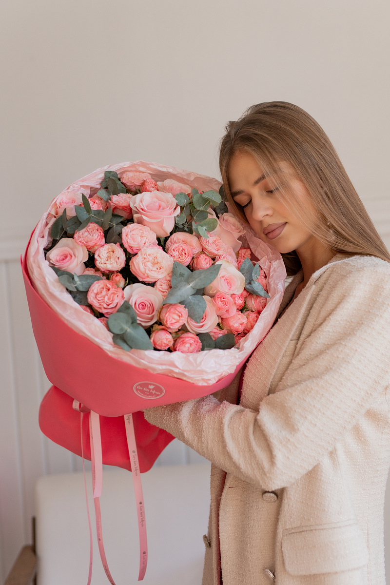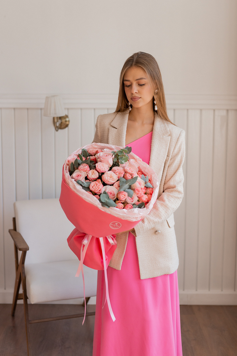 Элементы декора и расцветка цветов в выполненном букете могут иметь некоторые незначительные отличия от образца.
