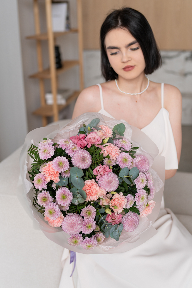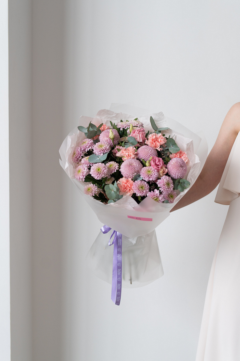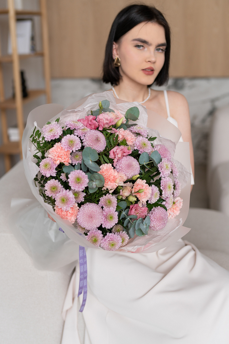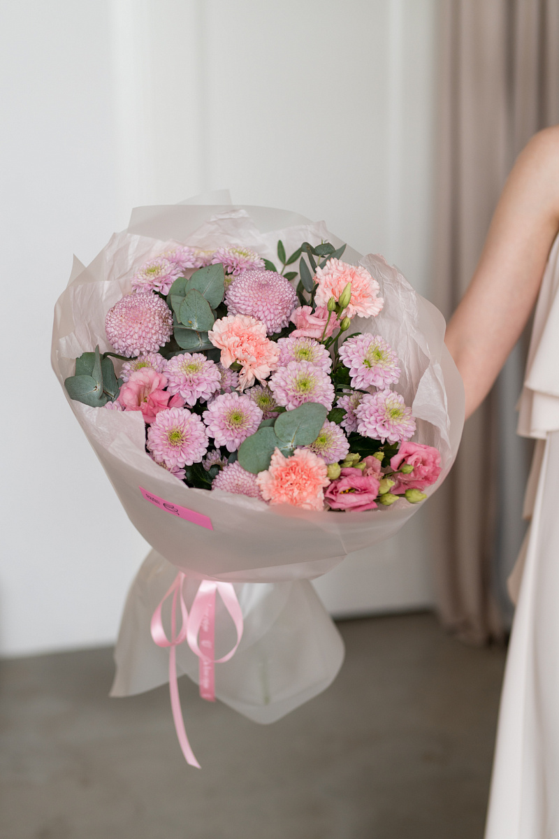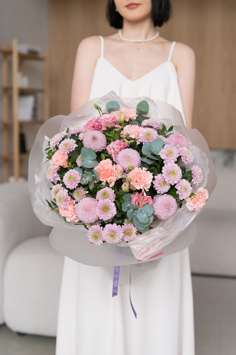 Диантус ,Хризантема кустовая ,Хризантема одноголовая ,Эустома ,Эвкалипт