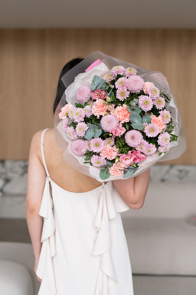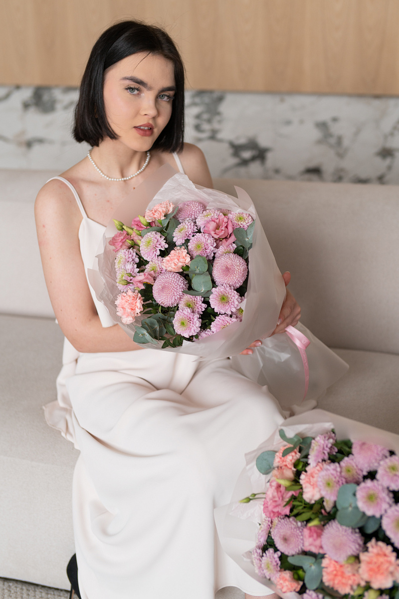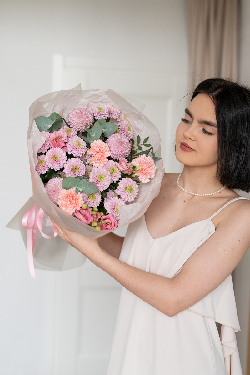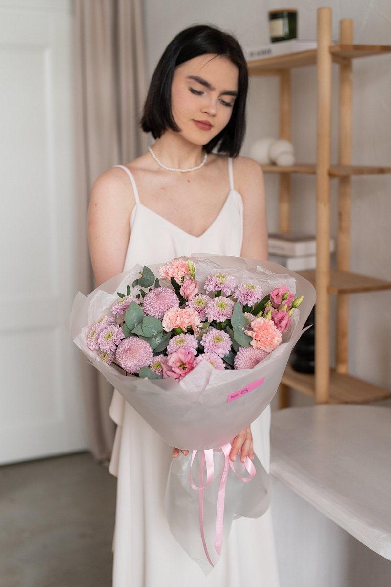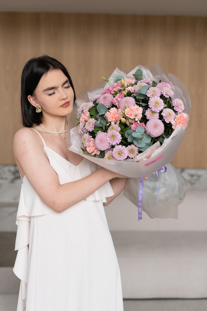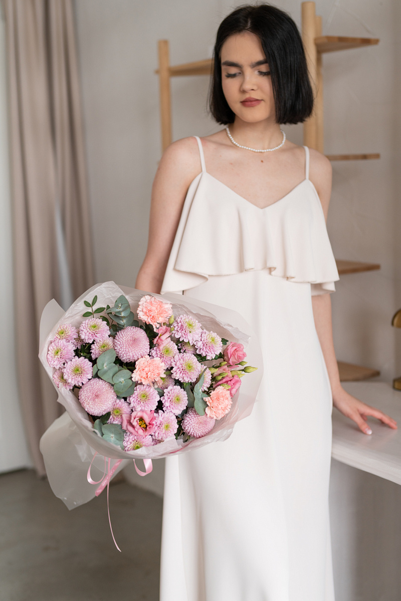 Диантус ,Хризантема кустовая ,Хризантема одноголовая ,Эустома ,Эвкалипт