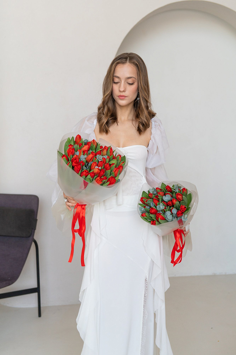 Элементы декора и расцветка цветов в выполненном букете могут иметь некоторые незначительные отличия от образца.