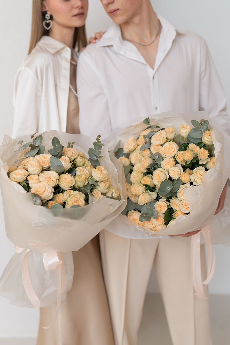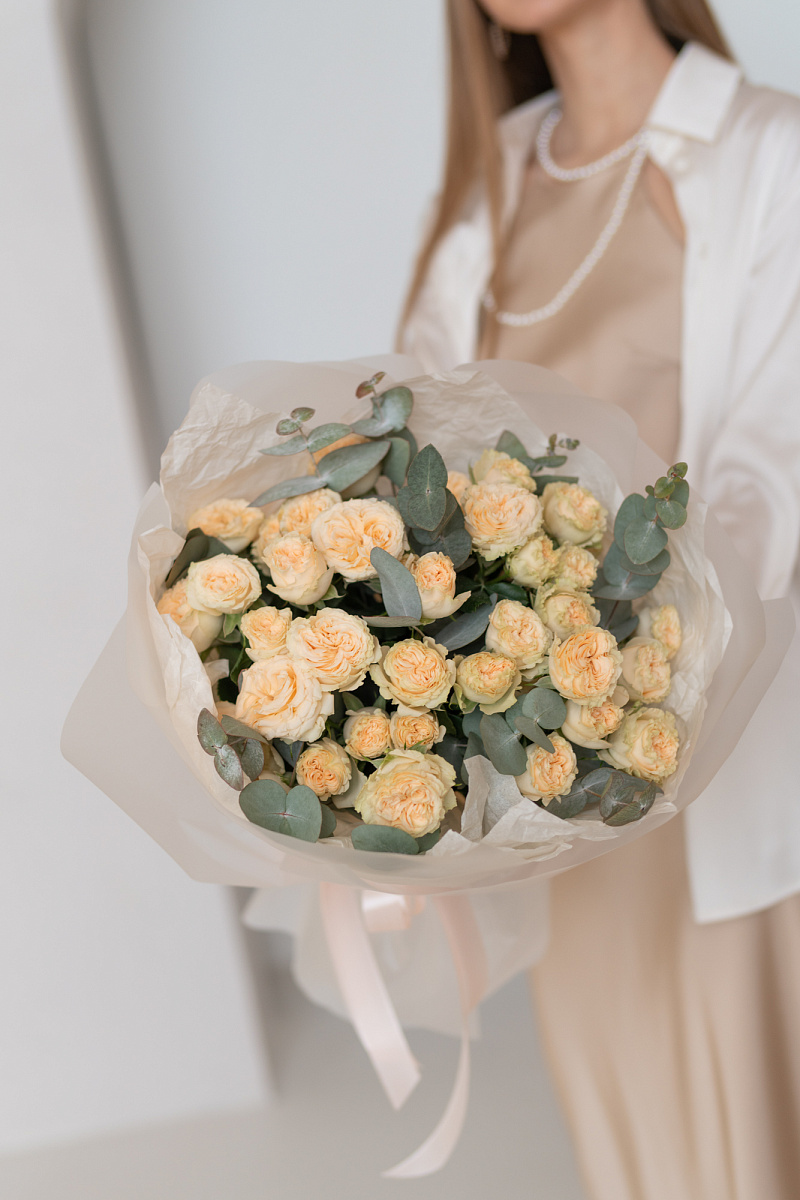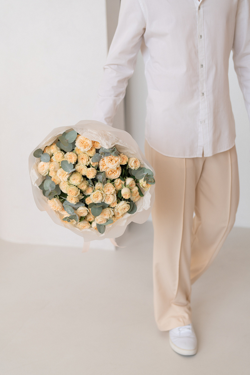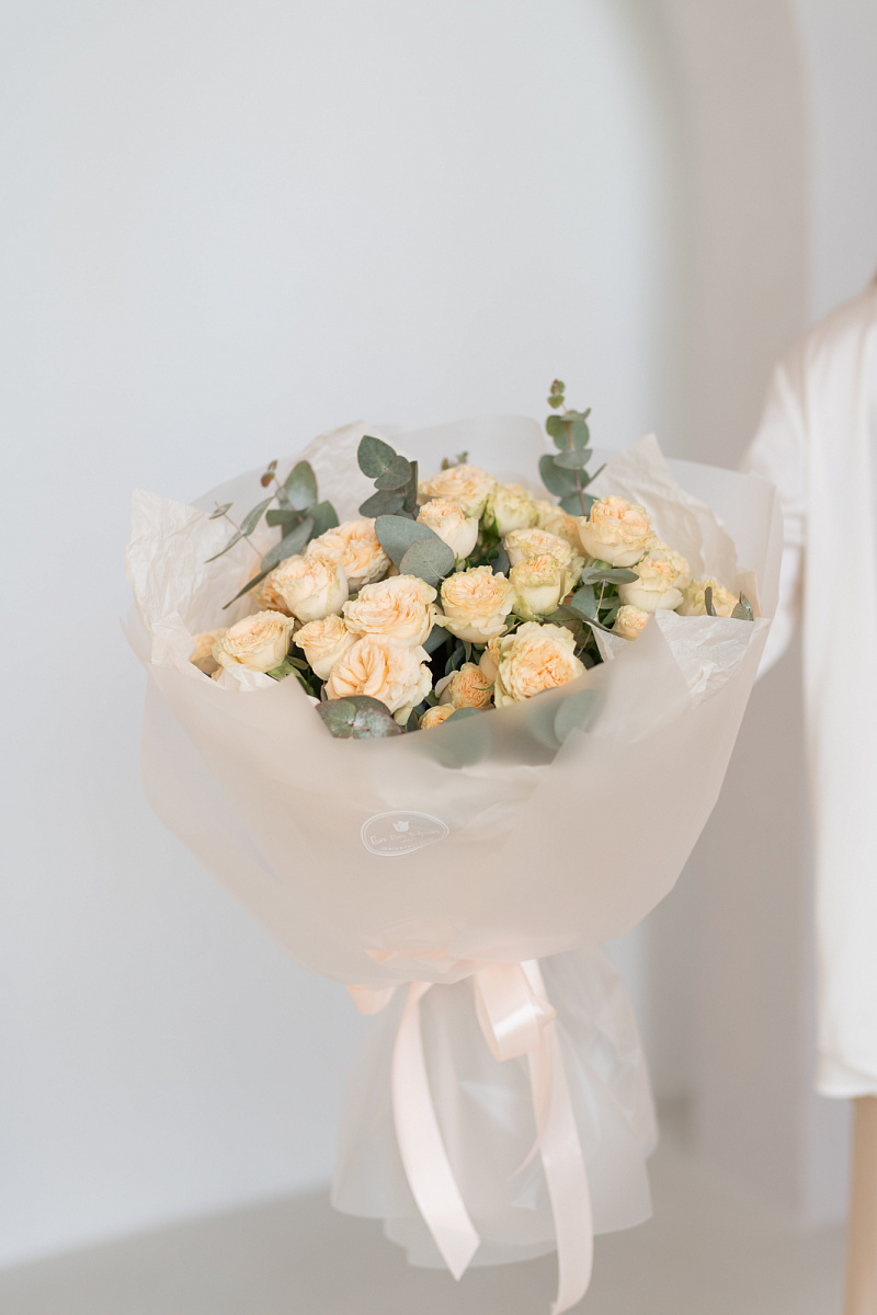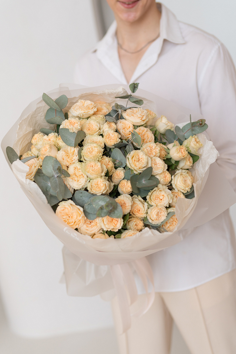 Букет из кустовых роз - это прекрасный подарок для любого случая, будь то день рождения, свадьба или просто выражение благодарности.Такой букет будет радовать вас своей красотой и ароматом на протяжении длительного времени.Дарите кустовые розы и делитесь красотой с любимыми людьми!