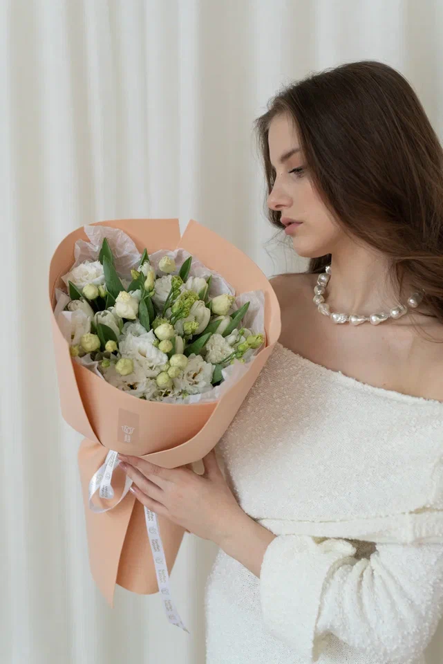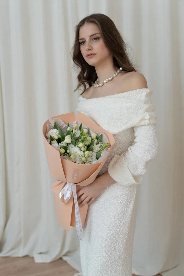 Элементы декора и расцветка цветов в выполненном букете могут иметь некоторые незначительные отличия от образца.