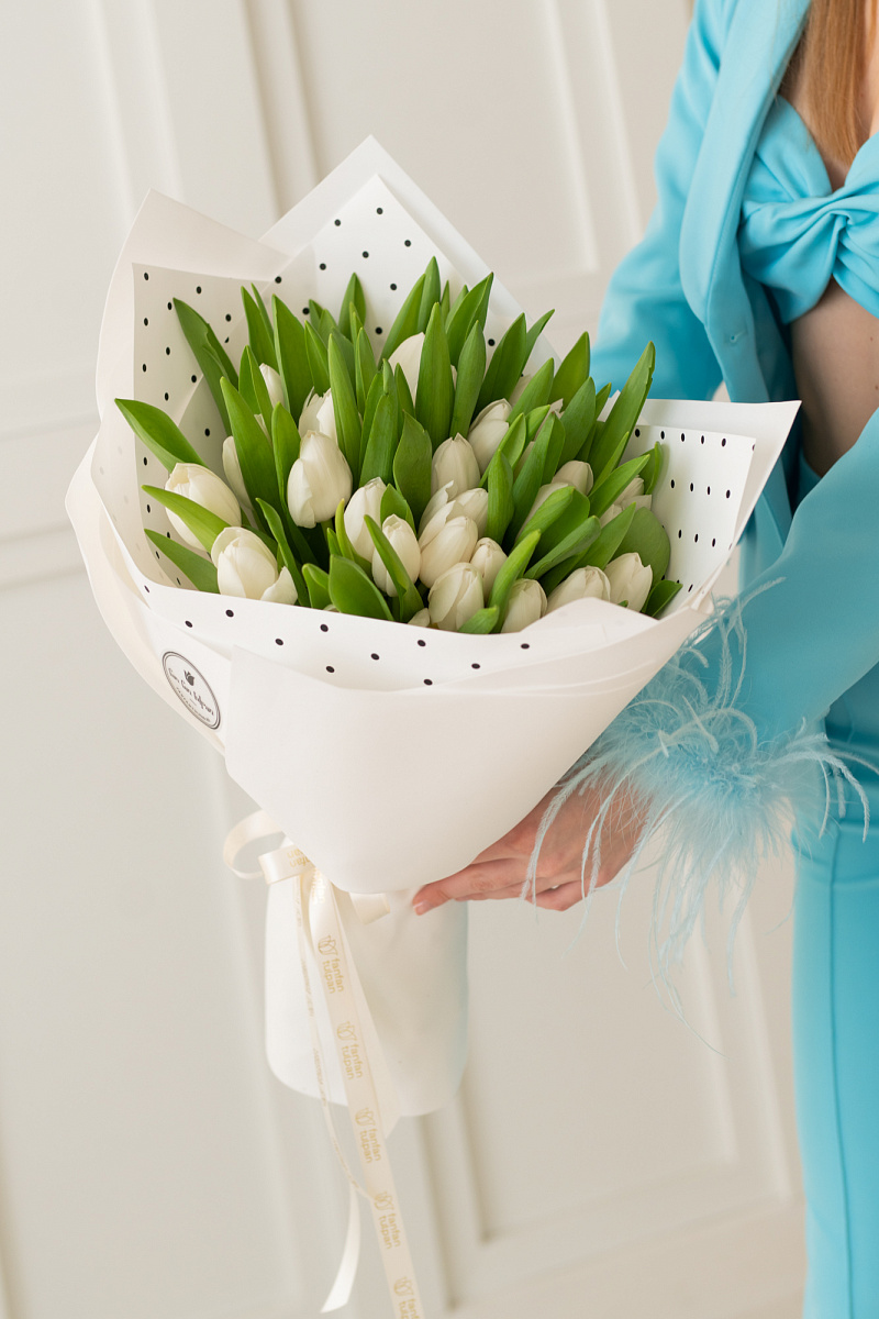 Тюльпаны — это и символ весны, и проявление бесконечной красоты природы. Их нежные лепестки, испускающие легкий аромат, завораживают своей простотой и изысканностью одновременно. И вот, когда ты видишь целый букет из тюльпанов перед собой, то понимаешь, что это произведение искусства, созданное руками талантливых флористов.