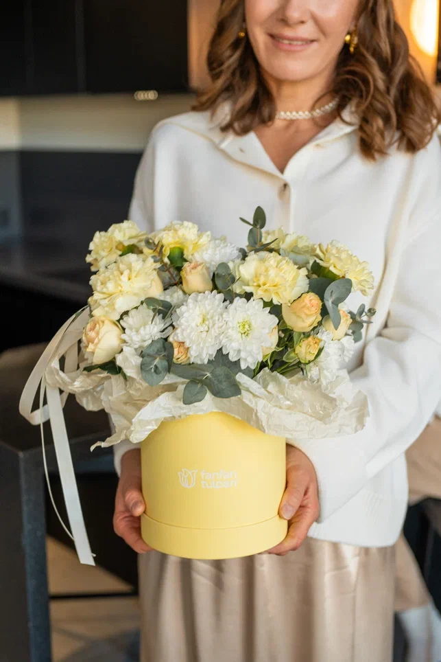 Элементы декора и расцветка цветов в выполненном букете могут иметь некоторые незначительные отличия от образца.