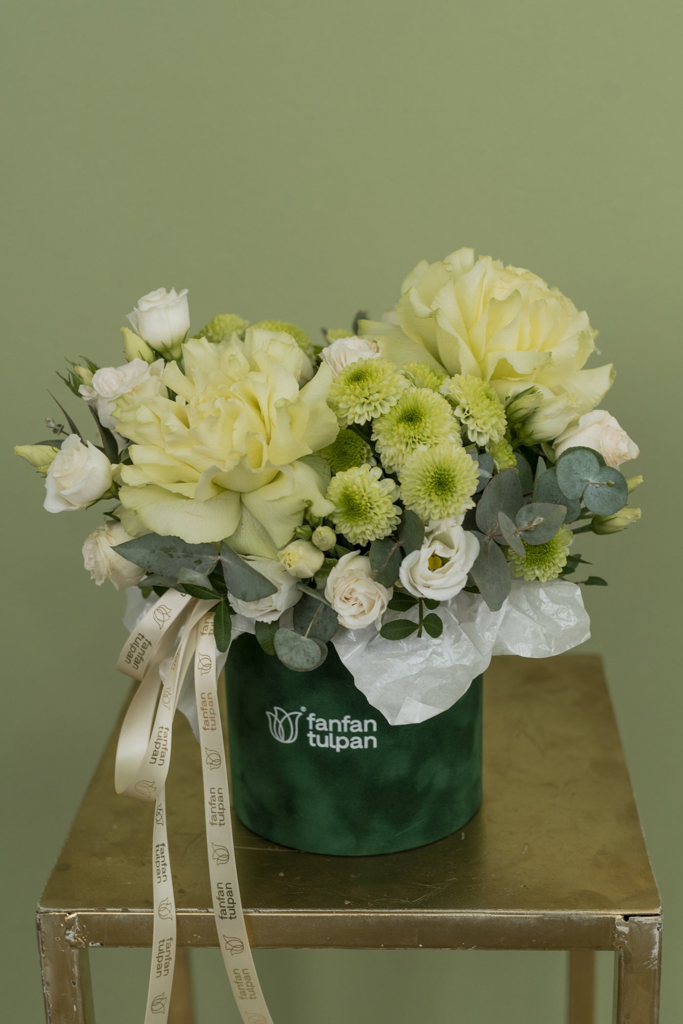 Розы ,Альстромерия ,Хризантема сантини ,Эвкалипт