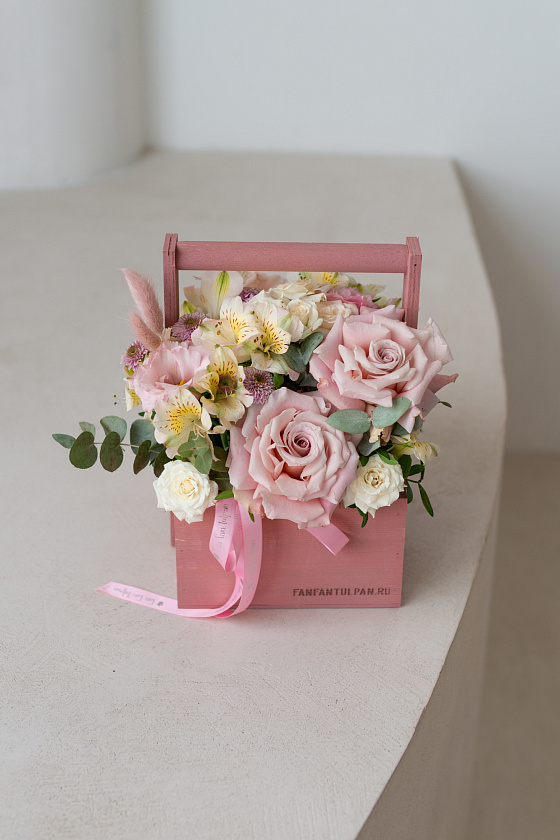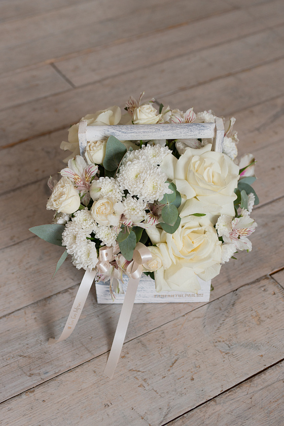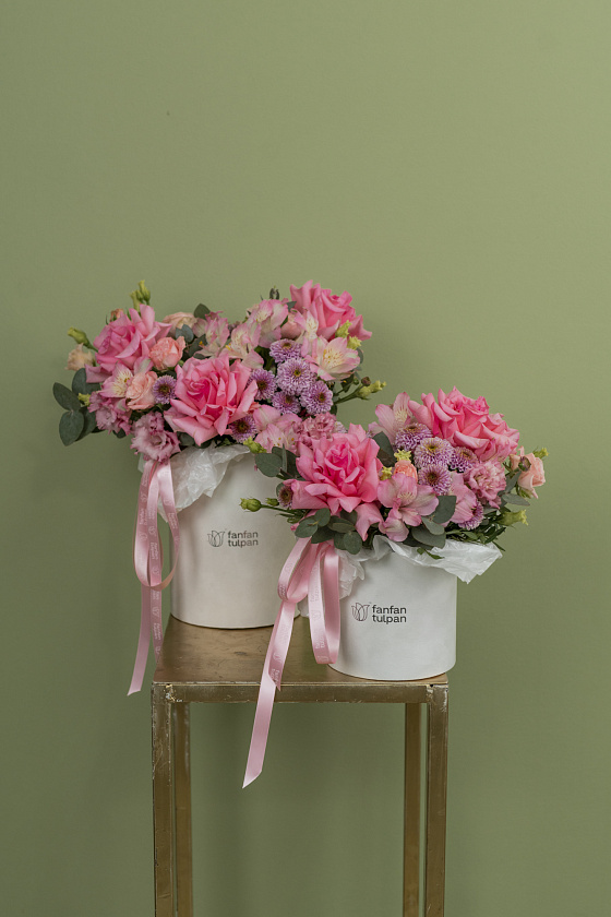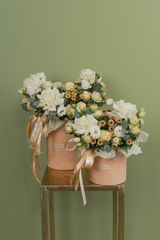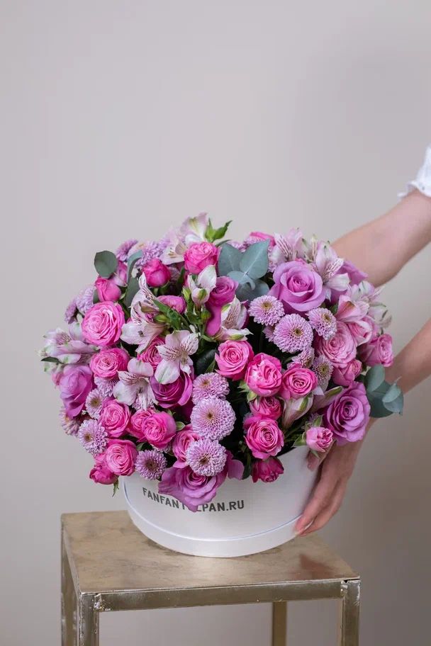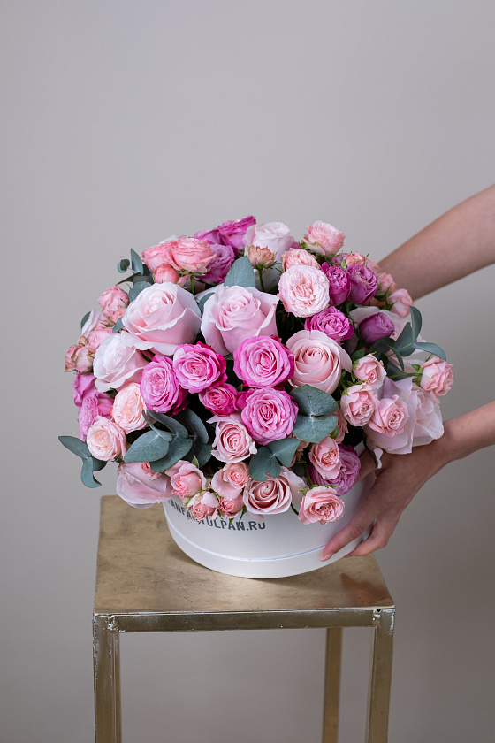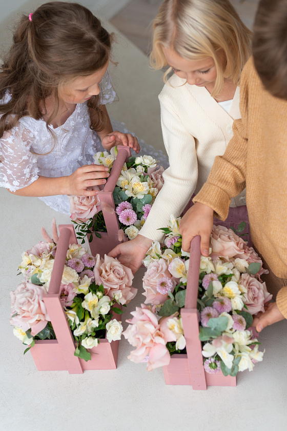 Собираем изысканные моно- и микс-композиции в корзинах, крафте, ящиках и шляпных коробках.
