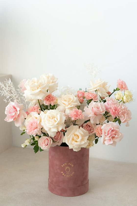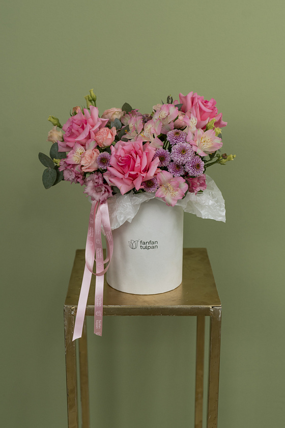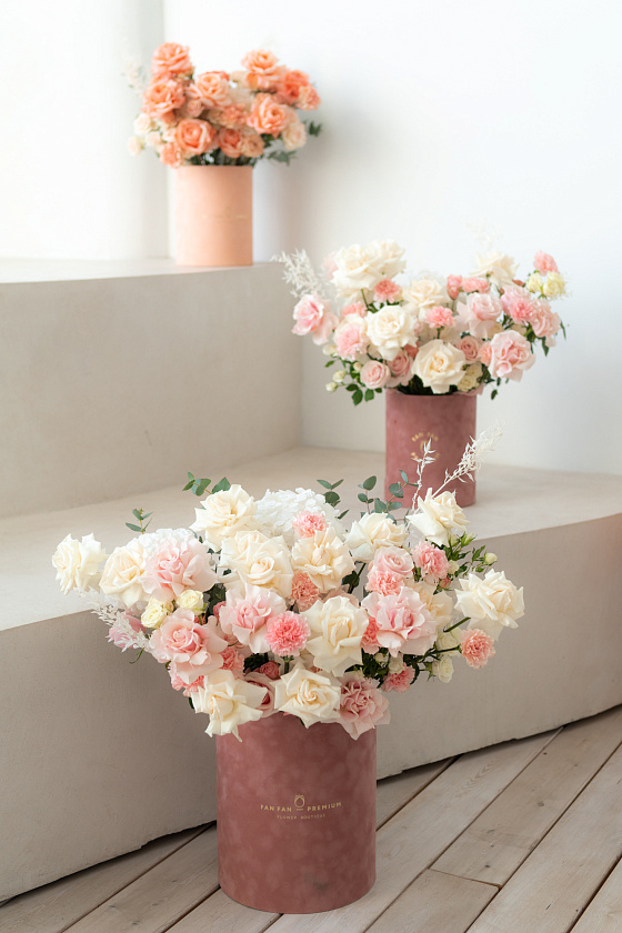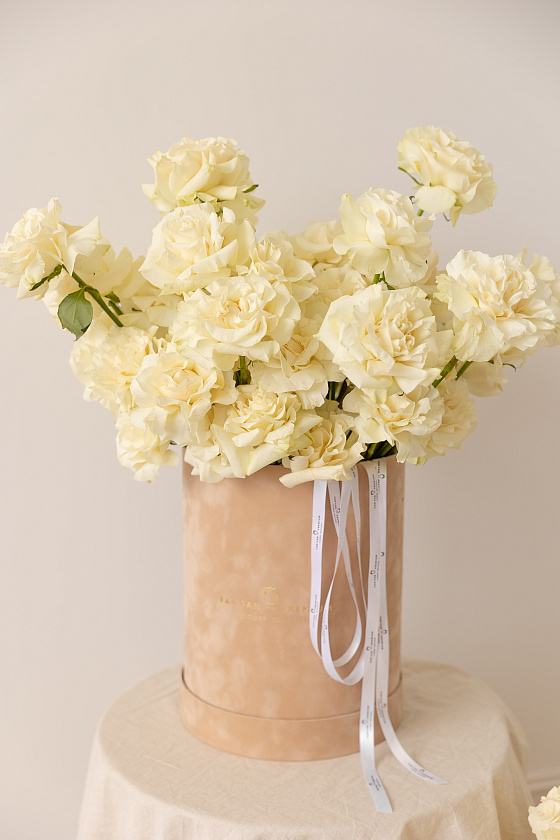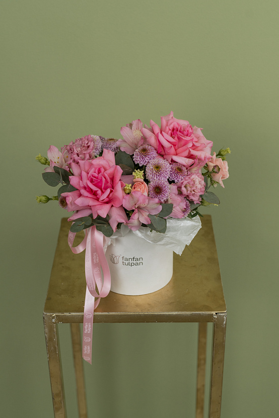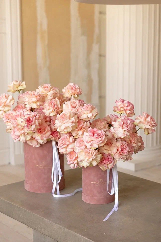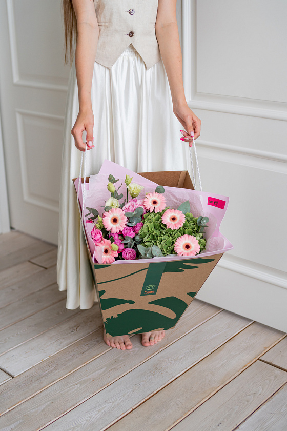 Собираем изысканные моно- и микс-композиции в корзинах, крафте, ящиках и шляпных коробках.