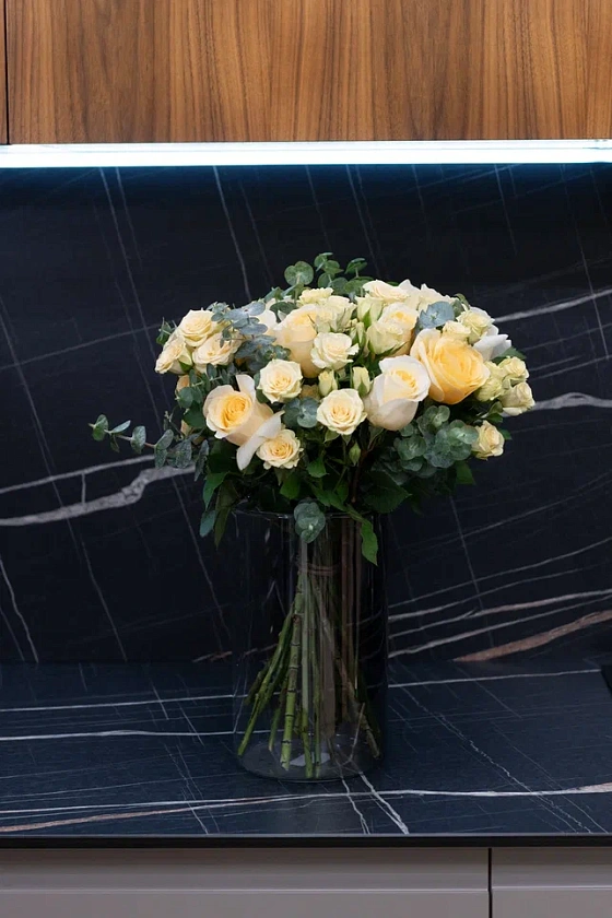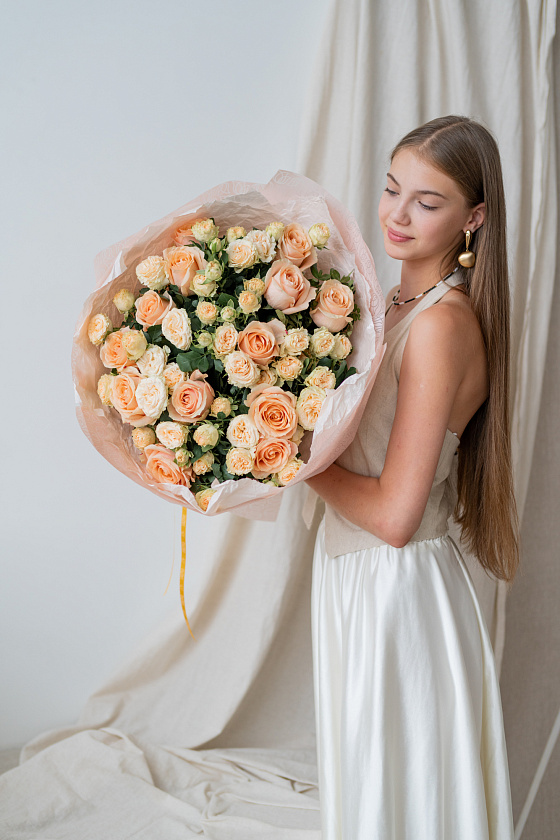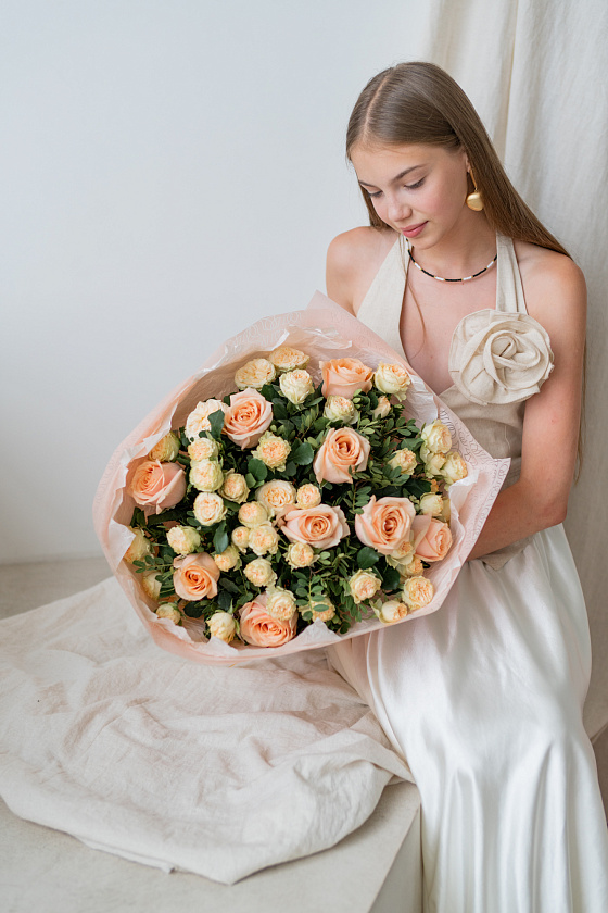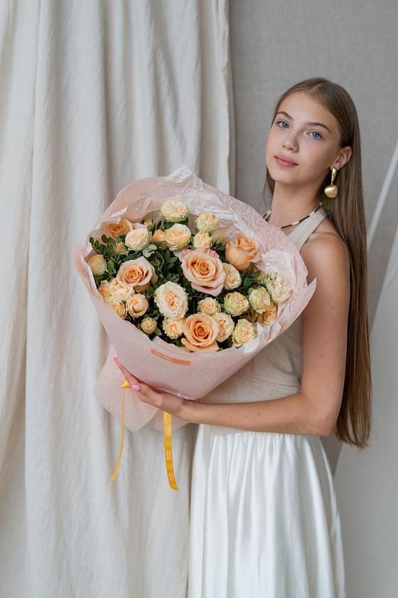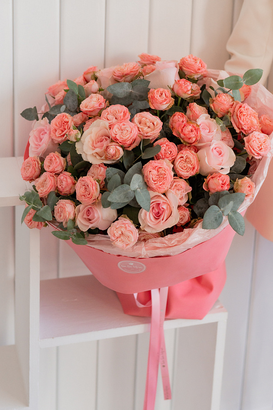 На стоимость композиции влияет упаковка, сорта, количество цветов, присутствие зелени или декоративных элементов. Цены располагаются под каждым товаром на сайте.